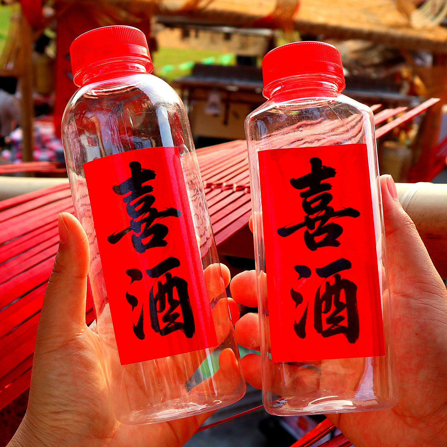 喜酒贴纸~红色婚庆结婚喜酒瓶空瓶贴纸 黄酒 酒酿 散酒 白酒 米酒 乔迁之喜 粮食酒自酿酒不干胶标签贴纸瓶贴