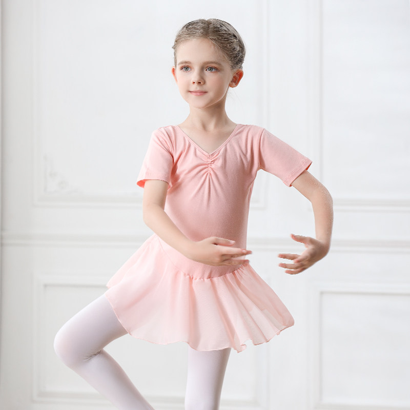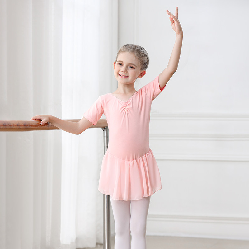 儿童舞蹈服女童练功服体操服短袖跳舞衣芭蕾舞裙幼儿中国舞服连体