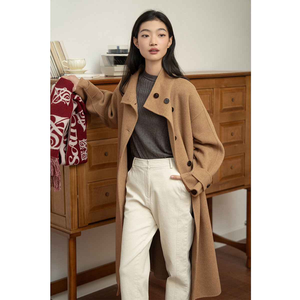 唐狮DESSO秋冬新款糯米裤高腰垂感宽松加绒直筒阔腿裤5