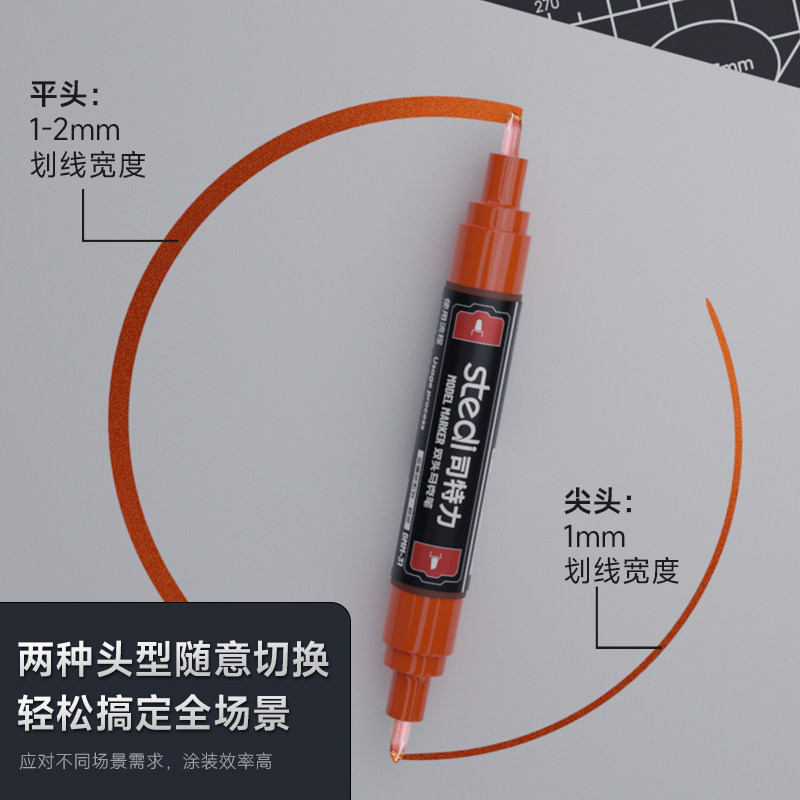 Stedi/司特力马克笔金属高达模型工具机甲上色涂装手办平尖双头儿童套装设计美术绘画水性彩色笔涂尖头关节