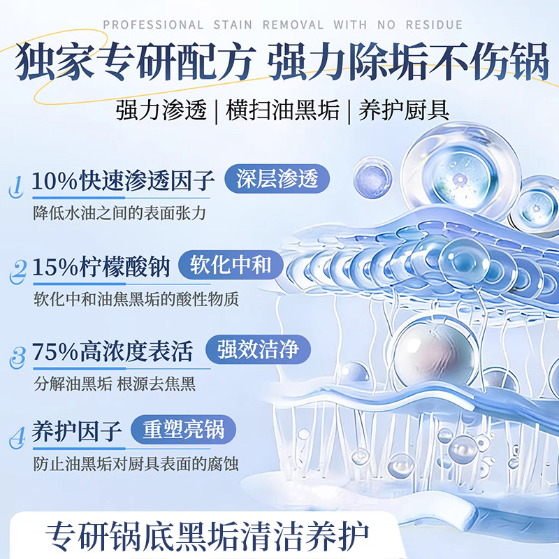 锅底清洁贴膜黑垢清洁剂洗锅底神器强力除黑剂重油污去黑烧焦除垢