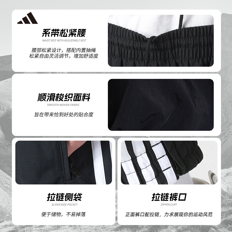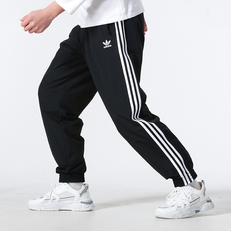 阿迪达斯三叶草梭织长裤男2026夏季新款三条纹运动卫裤复古束脚裤