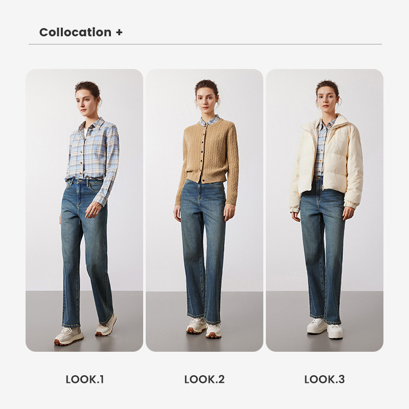 森柔|森马牛仔衬衫女春中长款oversize落肩长袖衣服格纹街头衬衣