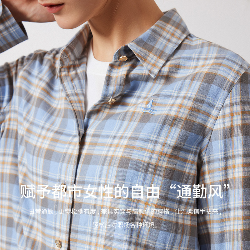 [纯棉]Navigare意大利小帆船新款休闲磨毛衬衫女长袖宽松格子衬衣