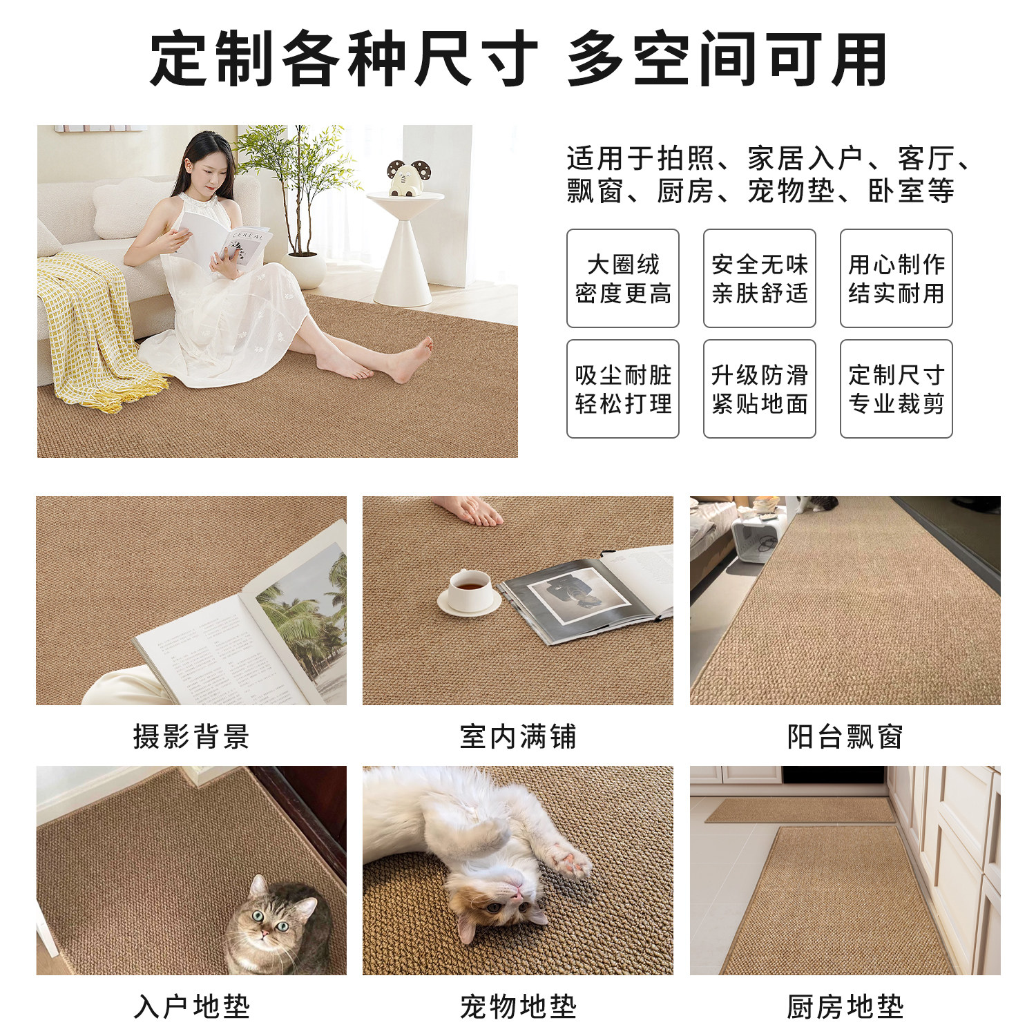 日式地毯客厅2024新款摄影棚沙发卧室房间仿剑麻防猫抓地垫子拍照