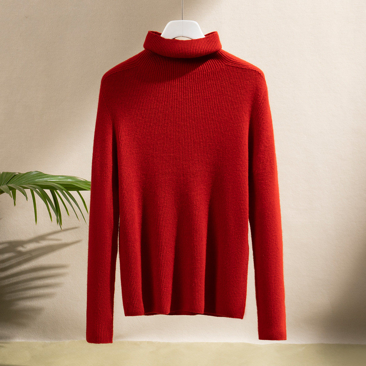 【100%绵羊毛】秋冬基础款保暖高领纯色打底坑条女式羊毛衫