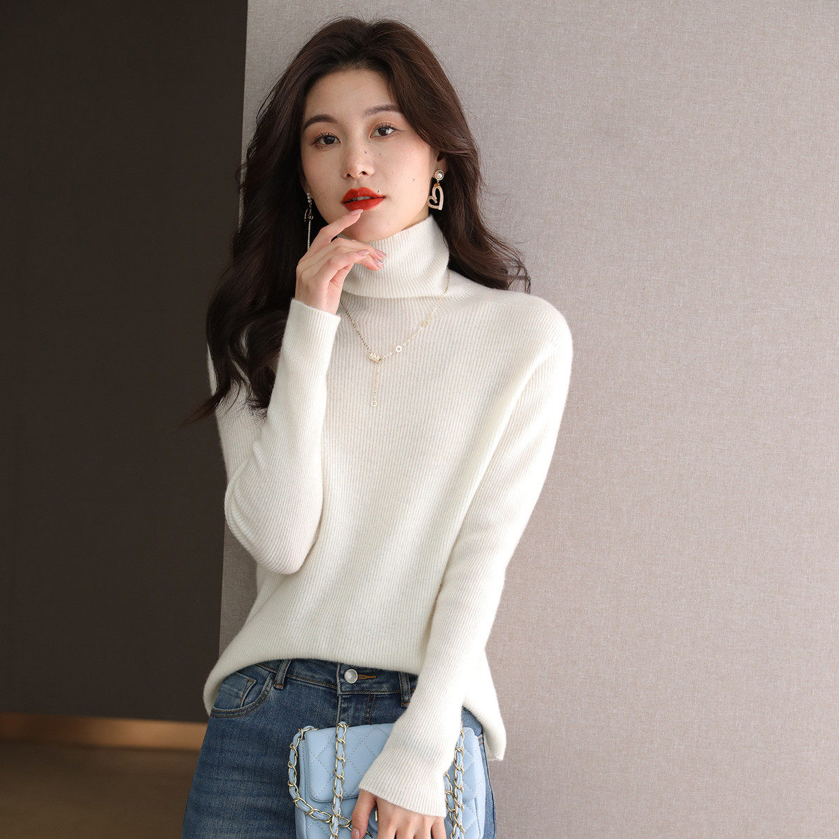 品牌高级感羊毛衫女半高领宽松毛衣秋冬加厚羊绒长袖针织打底衫新