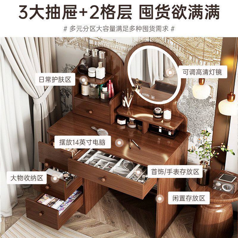 实木梳妆台卧室小型化妆桌简约现代新款一体化妆镜化妆台梳妆桌子