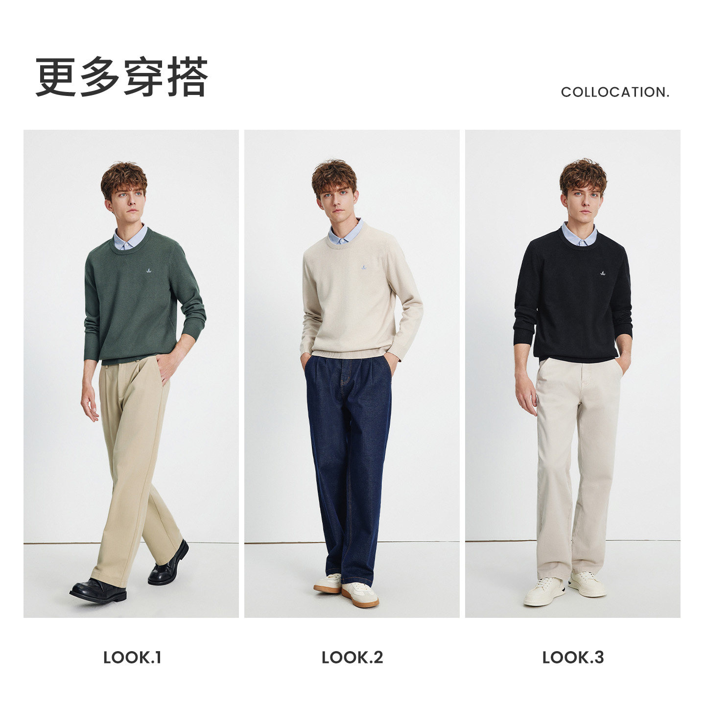 森马毛衫男冬季满版提花针织衫撞色毛衣宽松套头衫百搭提花潮-TK