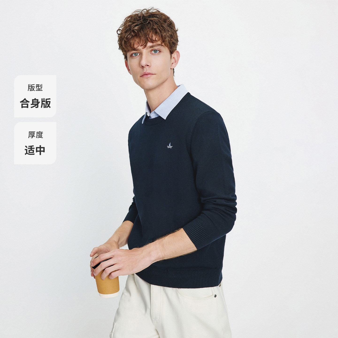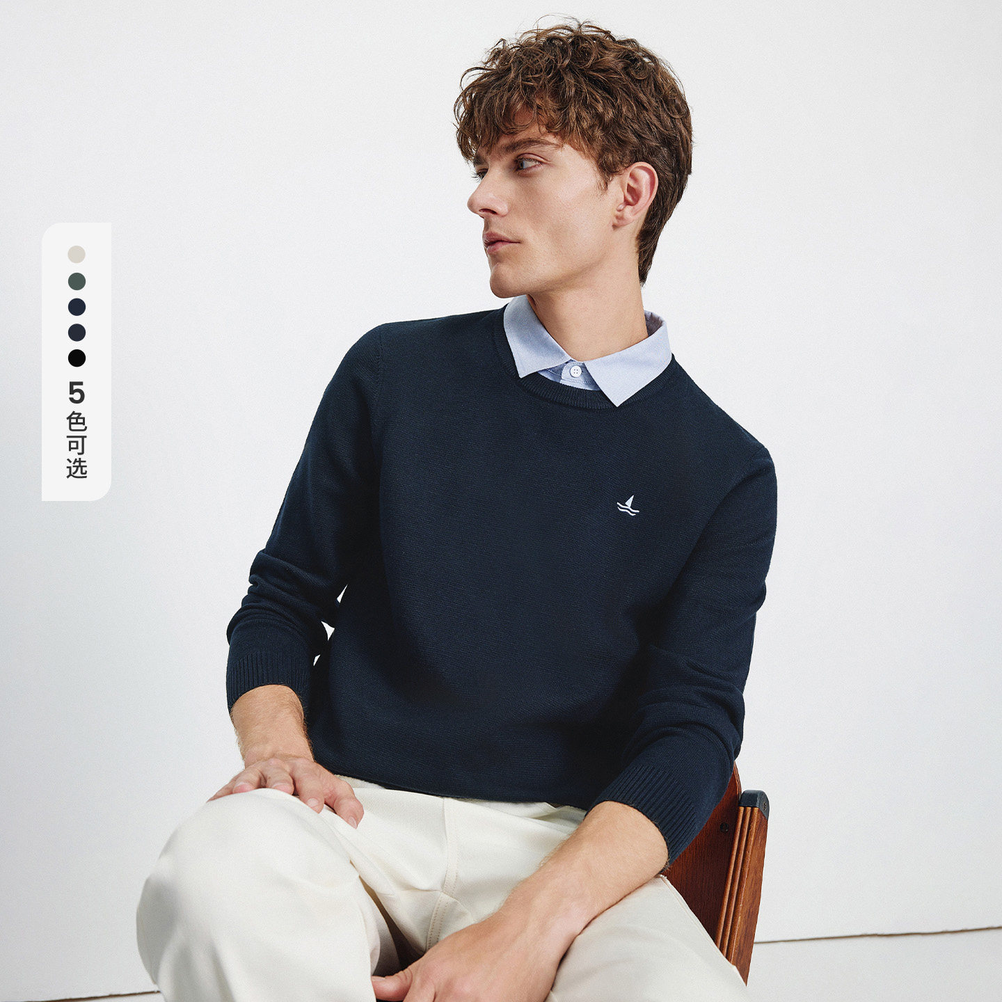Navigare意大利小帆船高弹叠穿假两件毛衣男春秋季新品通勤针织衫