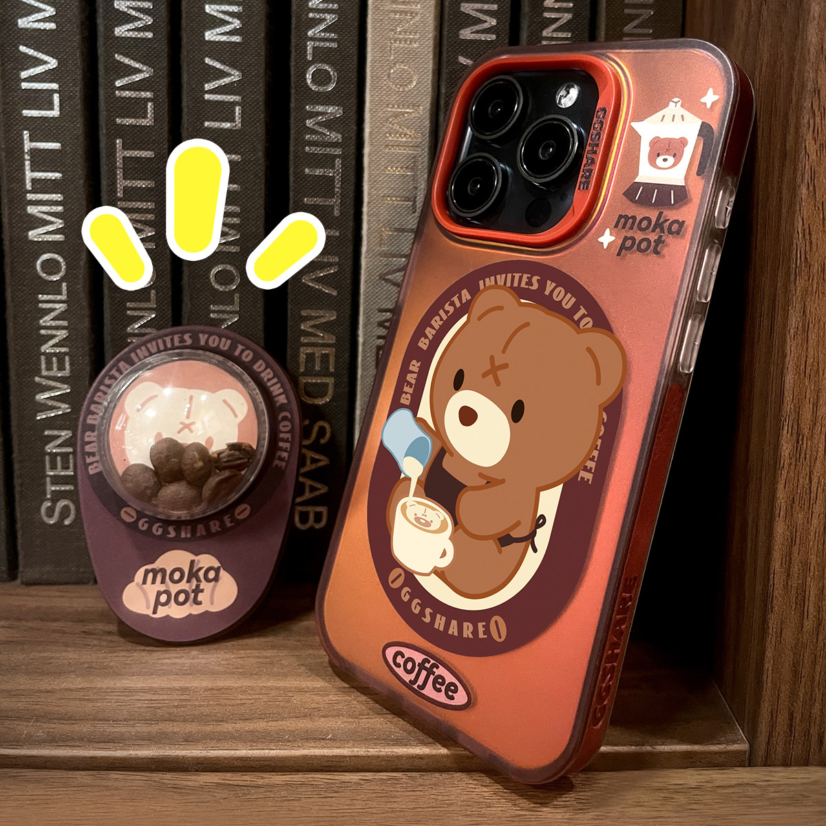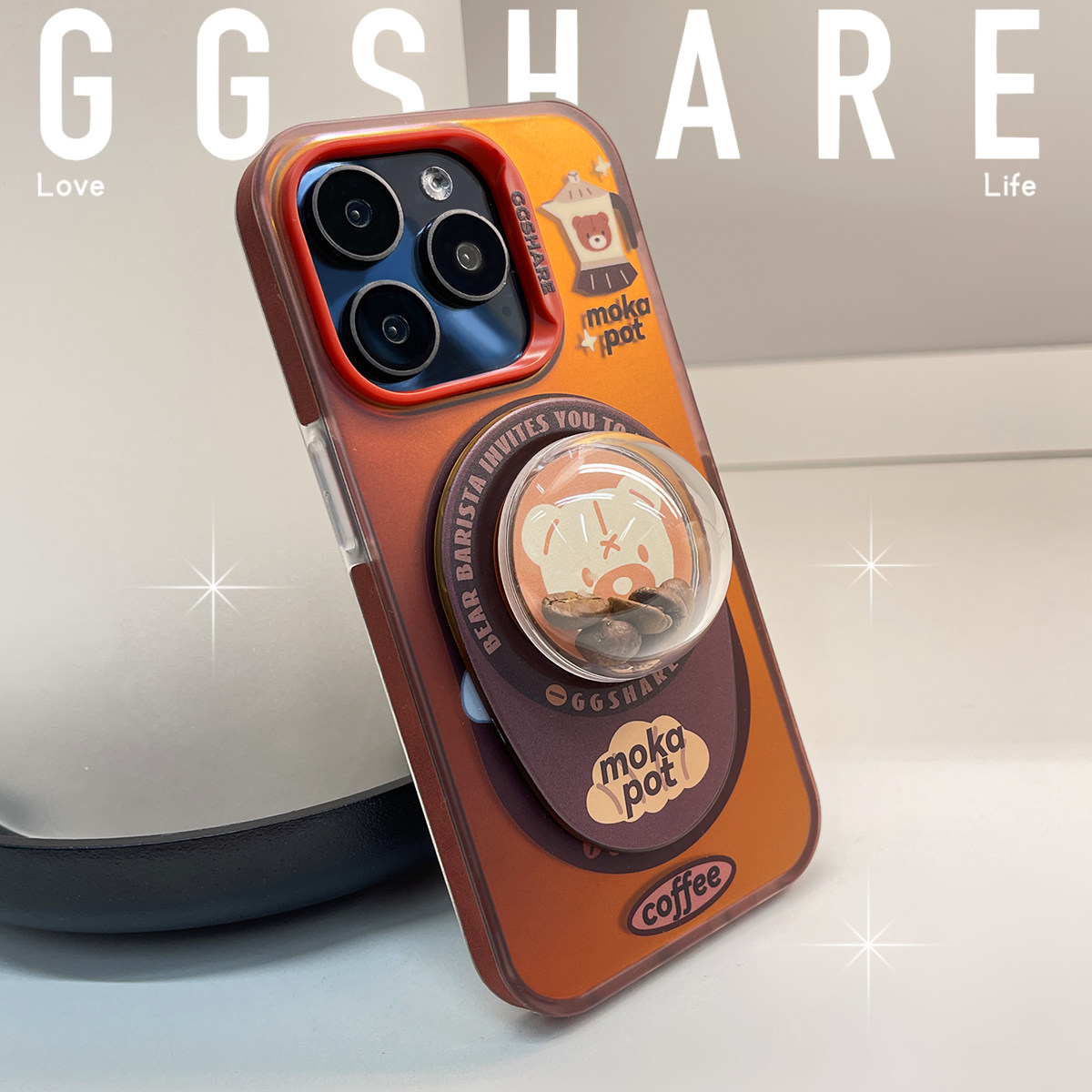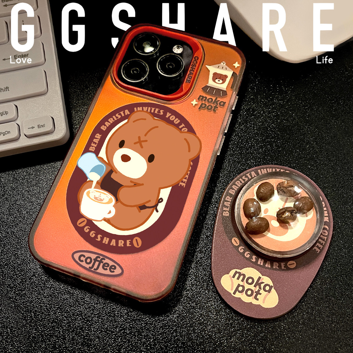 GGSHARE寄居蟹原创咖啡熊iphone17手机壳带支架16promax 苹果15新款14手机保护套防摔13磨砂小众高级感手腕绳