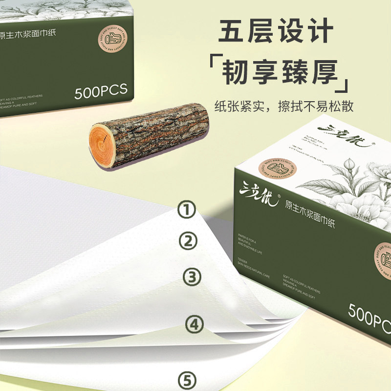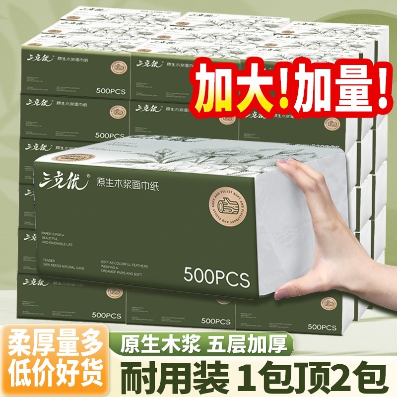 三克优抽纸5层加厚整箱纸巾批发实惠装餐巾纸家庭装纸抽抽纸母婴