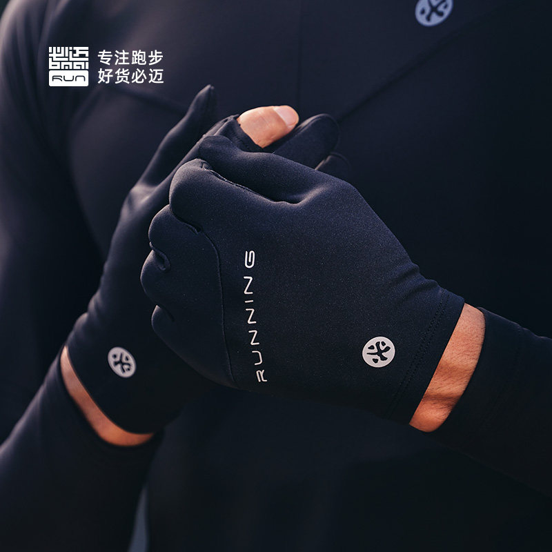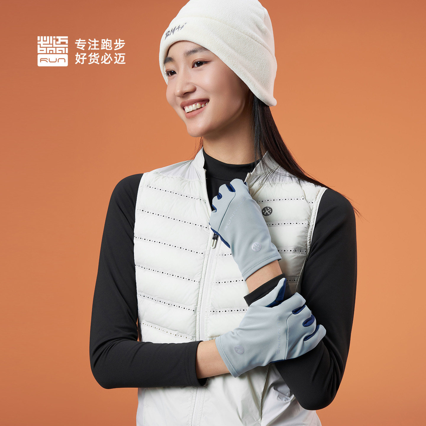 必迈秋冬新品跑步轻弹保暖手套舒适暖绒户外防滑手套翻指触屏