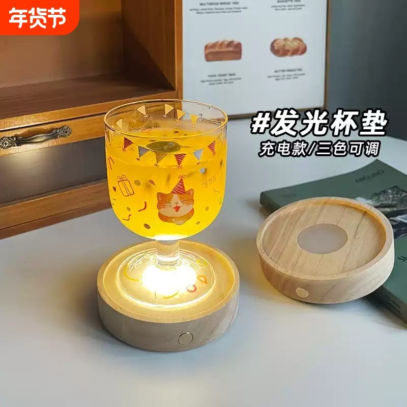 LED发光杯垫酒杯玻璃杯酒吧家用创意小众隔热垫ins风鸡尾酒底座灯