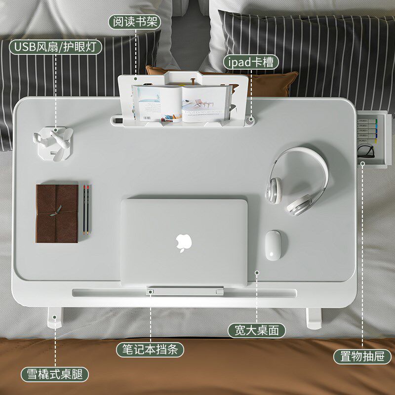 可升降折叠床上小桌子简约宿舍学生写字床上书桌学习调节高度支架家用卧室坐地飘窗懒人笔记本电脑办公小桌板