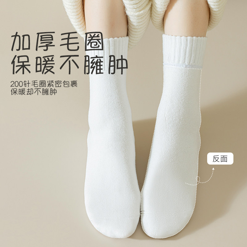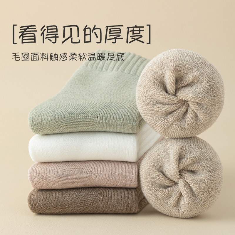 【送3双同款】秋冬新疆棉厚款中筒袜纯棉纱线毛巾底袜子男长袜女