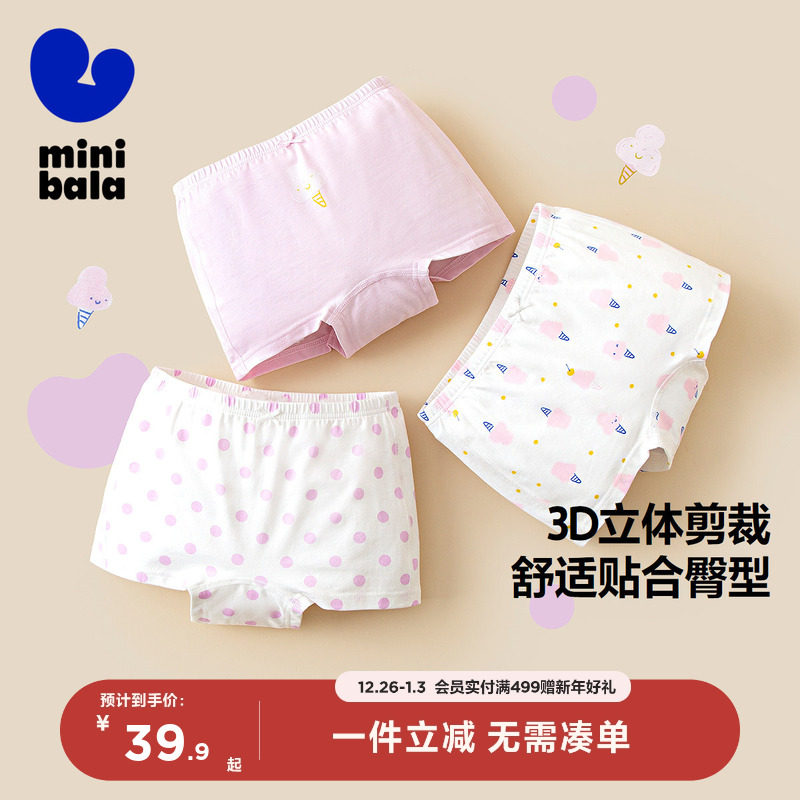 【3条装】迷你巴拉巴拉新款女童抑菌纯棉内裤不夹pp平角短裤