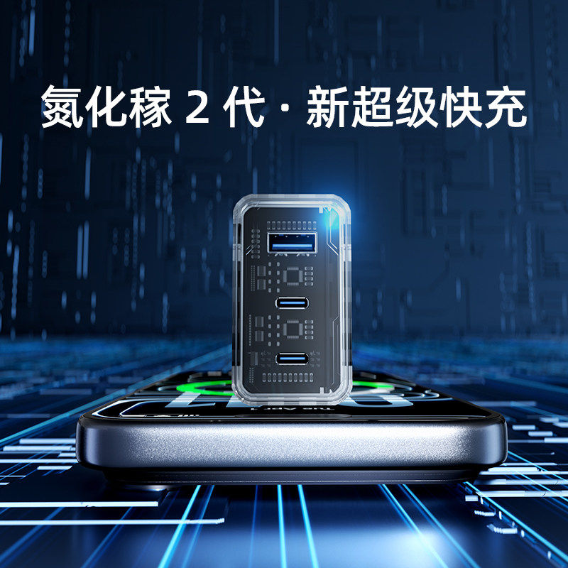 手机充电器多口呼吸灯充电头快充套装氮化镓充头适用华为充电器试用苹果17机甲风透明充电器官方原套装