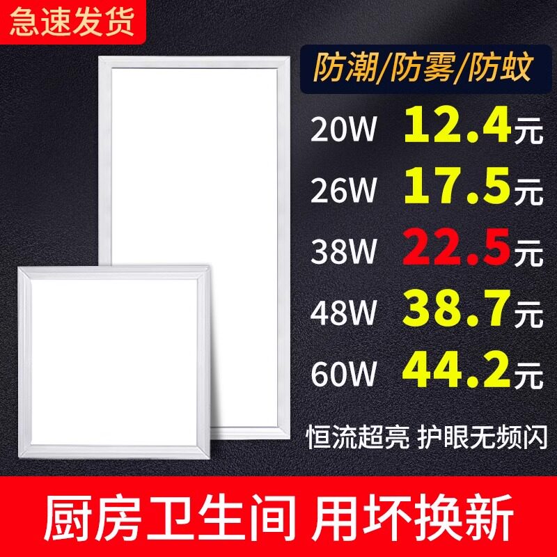 美灯粉平板灯300x300led厨房集成吊顶灯铝扣板石膏板30×30厕所灯