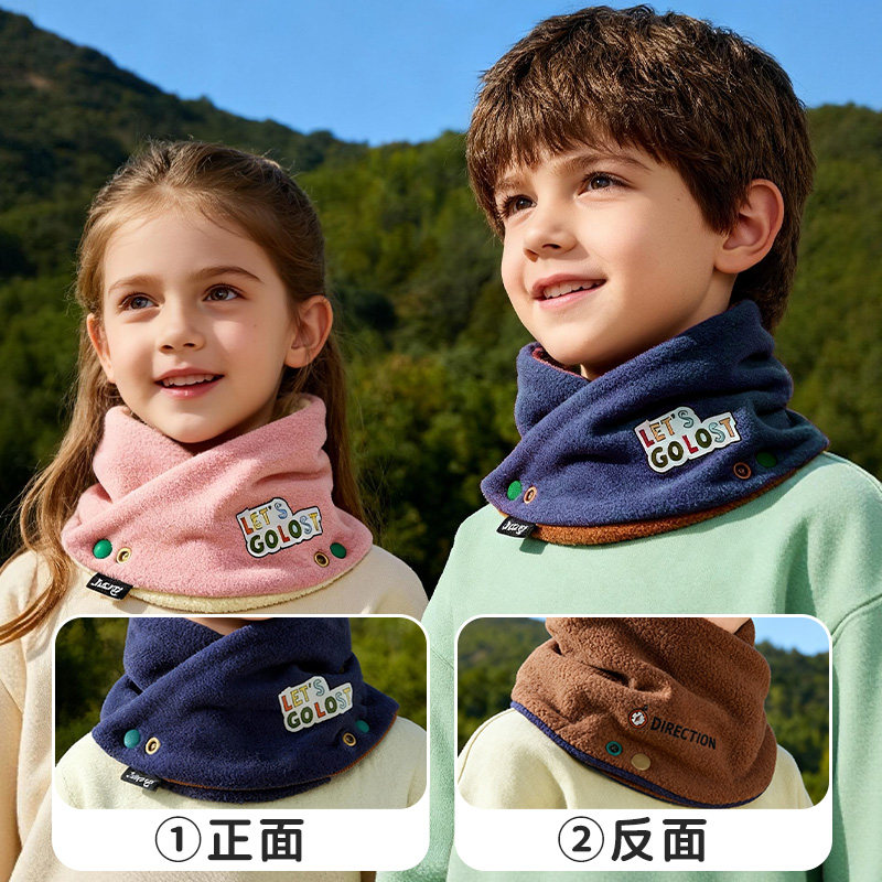 婧麒儿童围巾秋冬季男女童双面保暖防风围脖男女宝宝外出加绒护颈