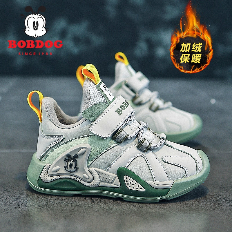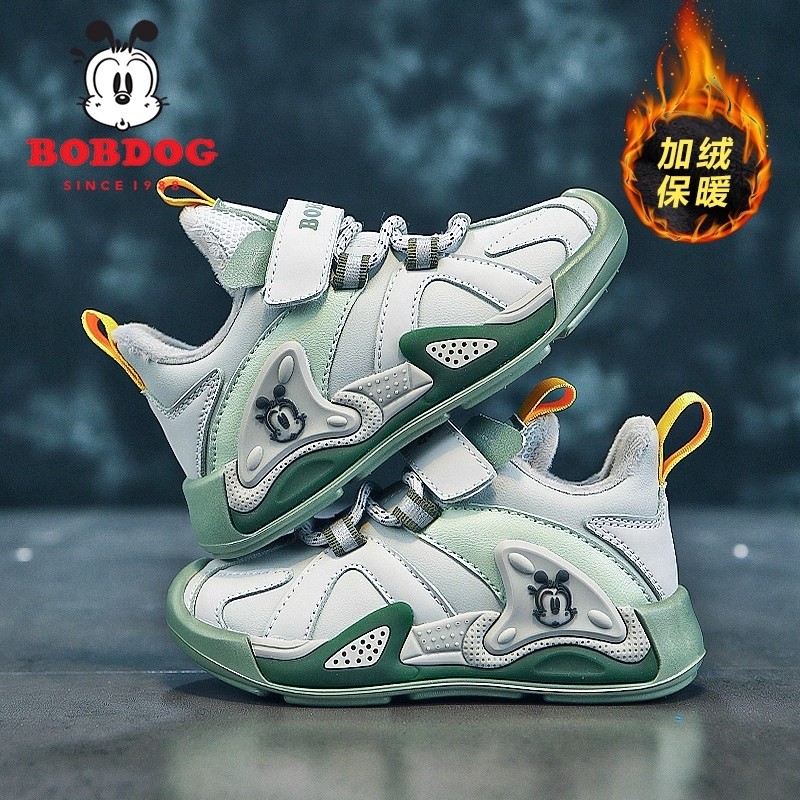 巴布豆男童棉鞋2025秋冬新款二棉大棉鞋子皮面加绒保暖儿童运动鞋