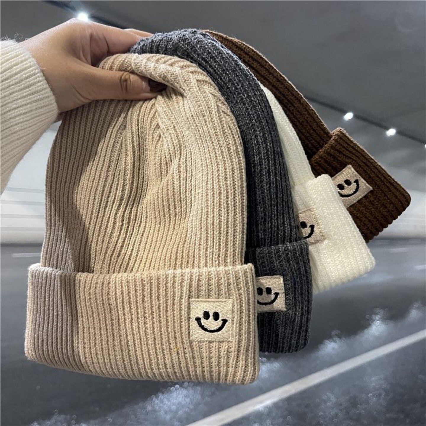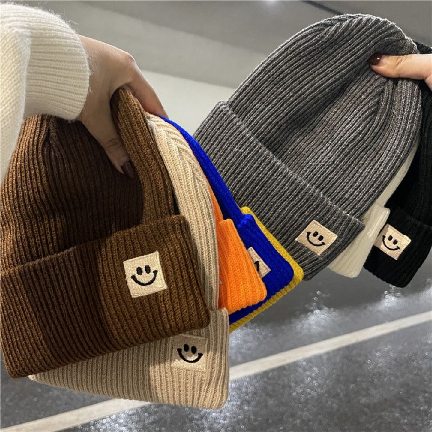 网红日系可爱笑脸毛线帽子女秋冬季可爱保暖潮流百搭护耳针织帽子
