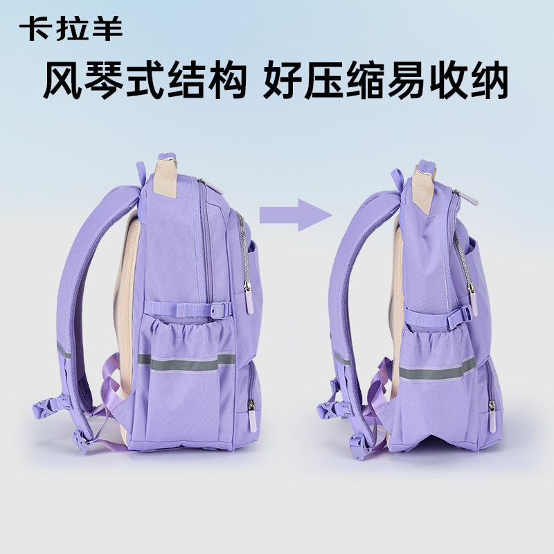 卡拉羊防下坠减负风琴书包大容量双肩包轻便百搭中学生新款男背包
