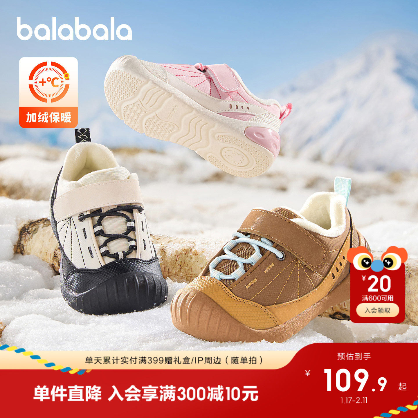 加绒防滑学步鞋,撞色户外好搭配