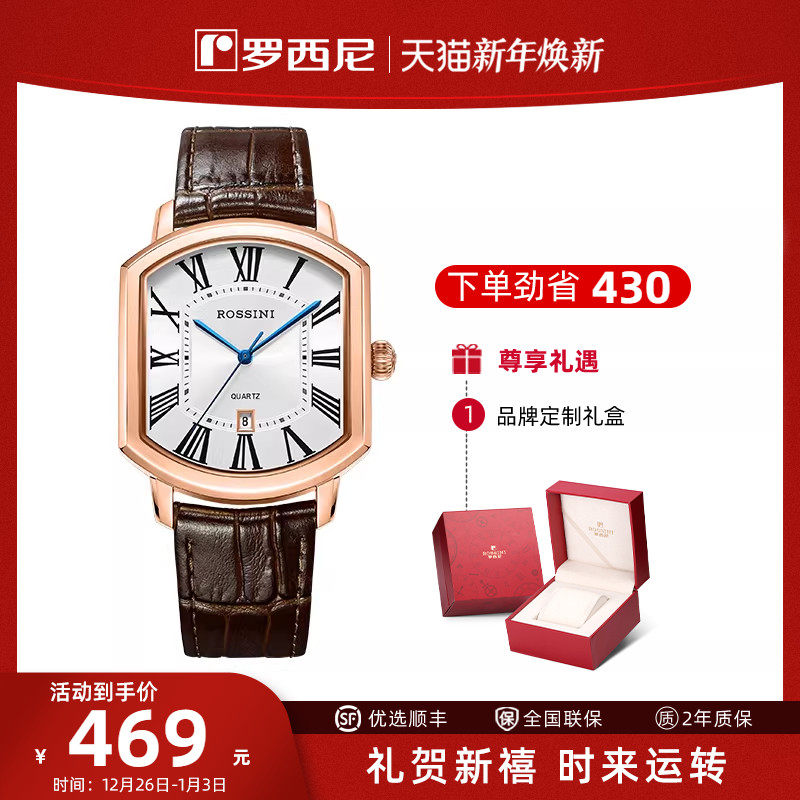 罗西尼官方旗舰店手表男方形复古石英腕表情侣对表121449