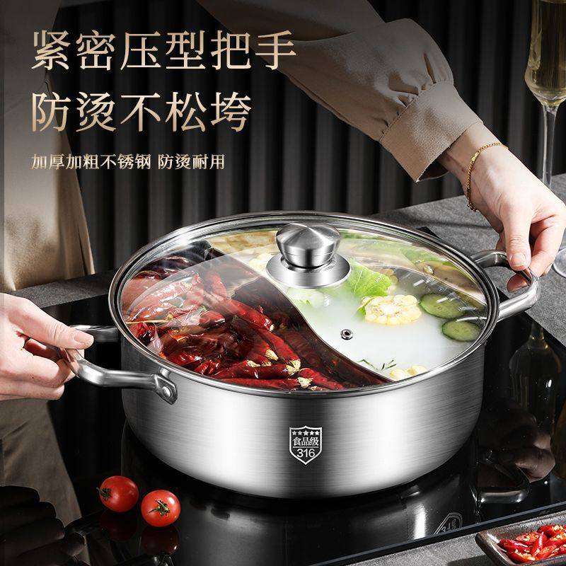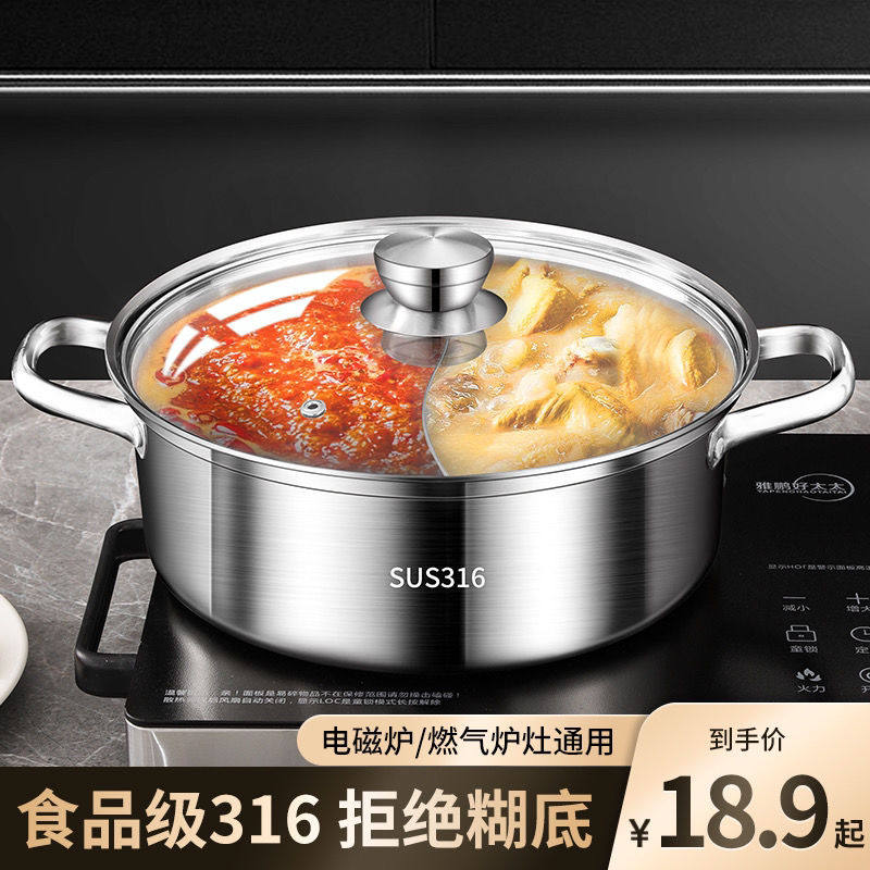 鸳鸯锅316不锈钢火锅家用电磁炉专用大容量火锅盆锅具食品级燃气