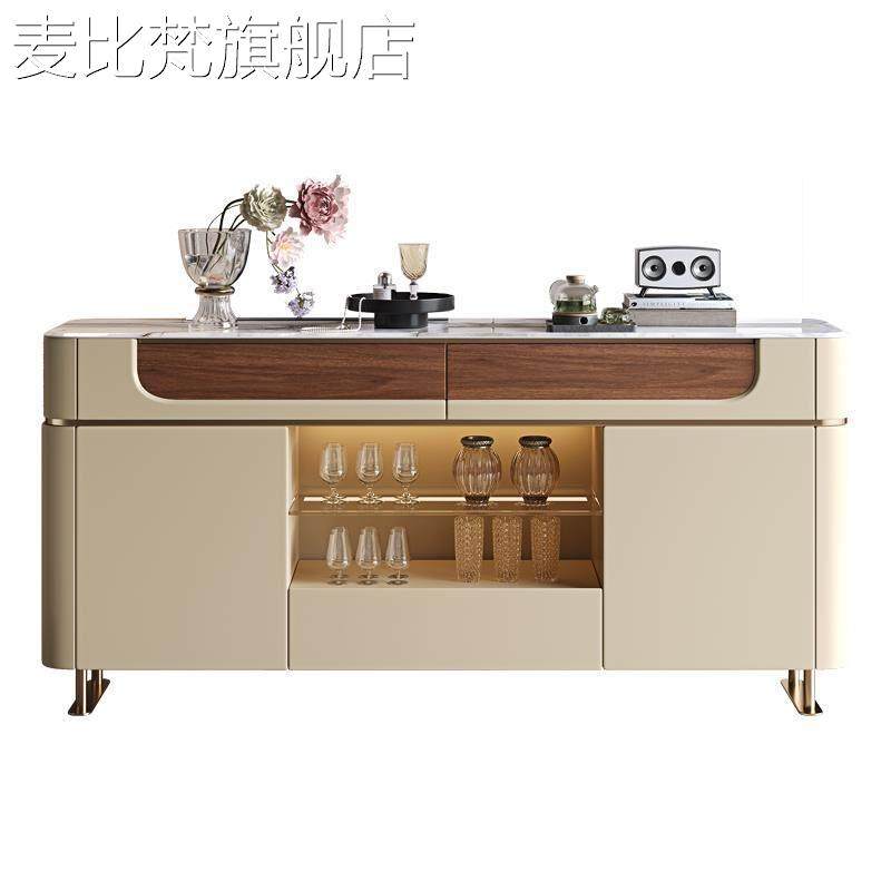 麦比梵实木餐边柜轻奢大理石储物柜茶水柜现代简约别墅过道装饰柜玄关柜摆件饰品床笠拉车