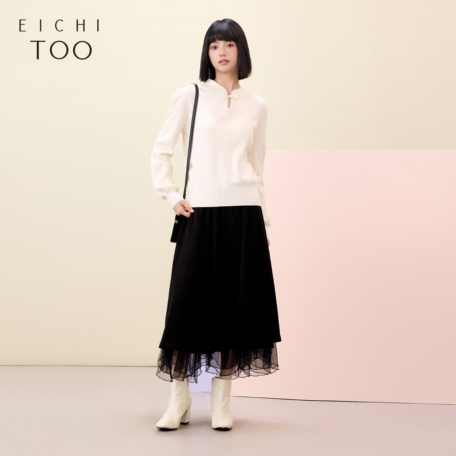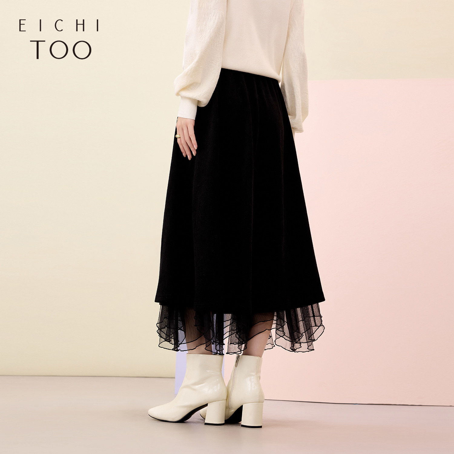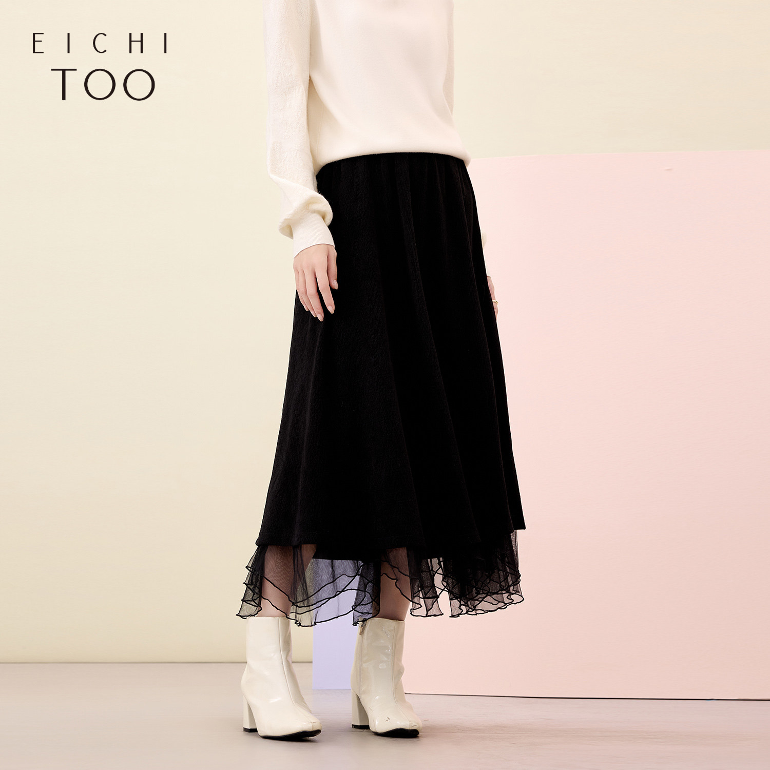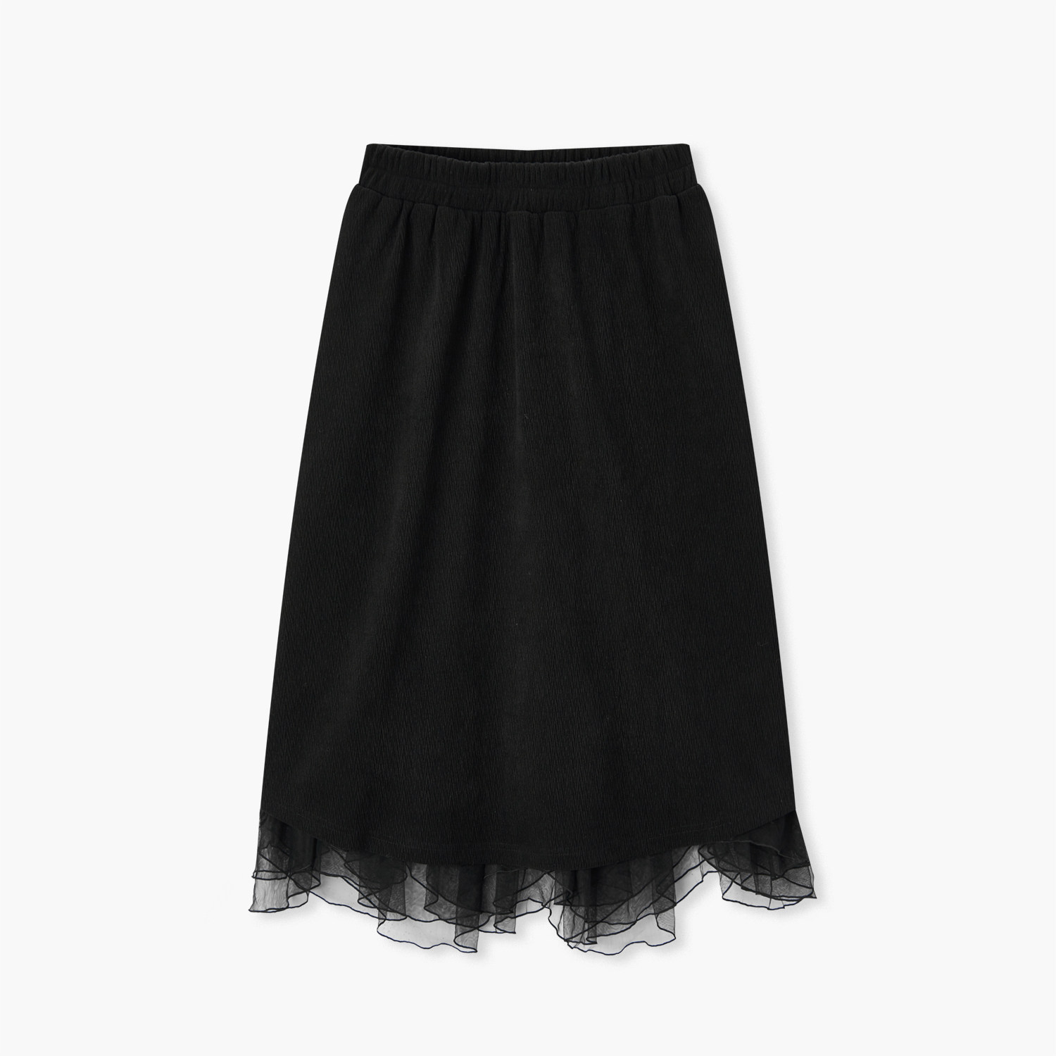 爱居兔花边半身裙女冬季新款黑色白搭显瘦肌理感气质长裙子