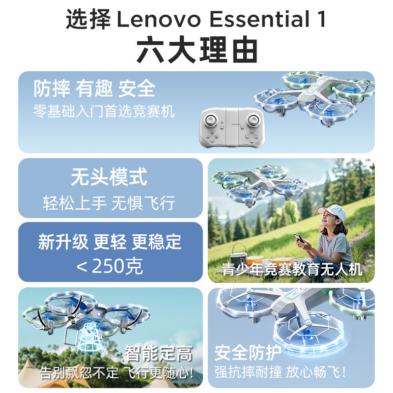 联想Lenovo Essential 儿童无人机穿越机遥控飞机青少年比赛专用避障防护中小学生航拍竞赛生日礼物