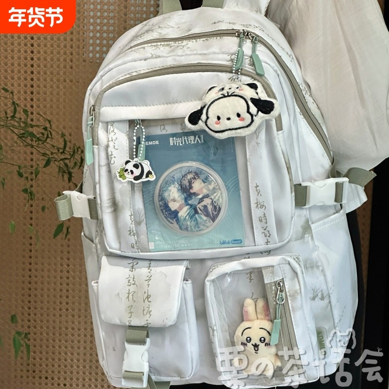 茶话会新中式国风书包女大容量痛包初中高中学生休闲电脑双肩背包