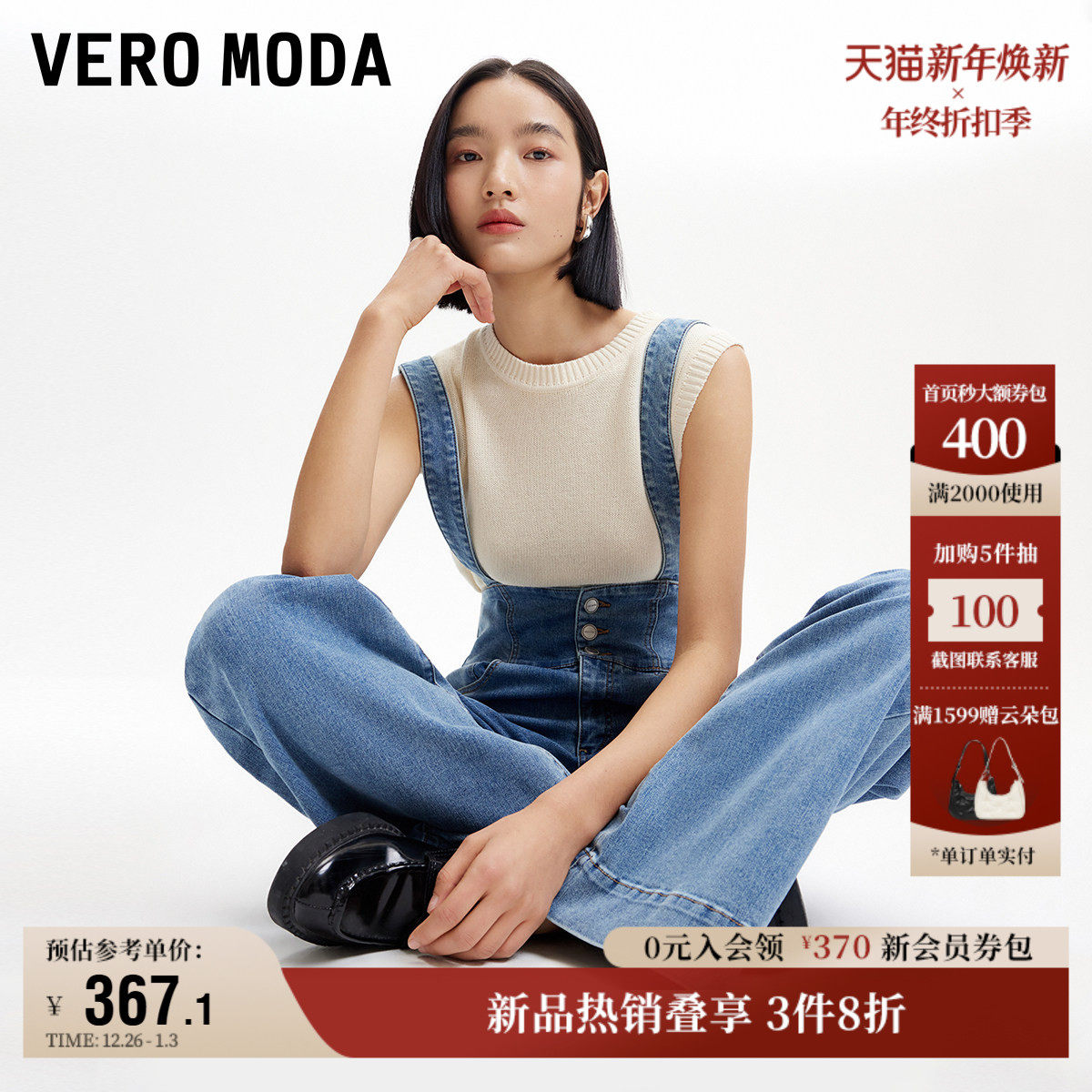Vero Moda奥莱牛仔裤女2025秋季新款可拆背带高腰微喇背带裤长裤