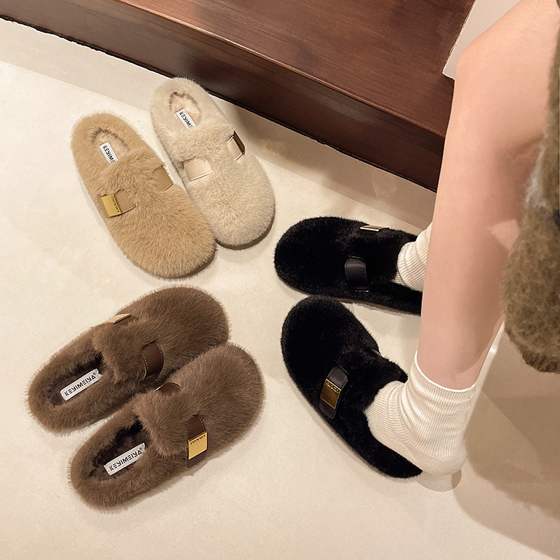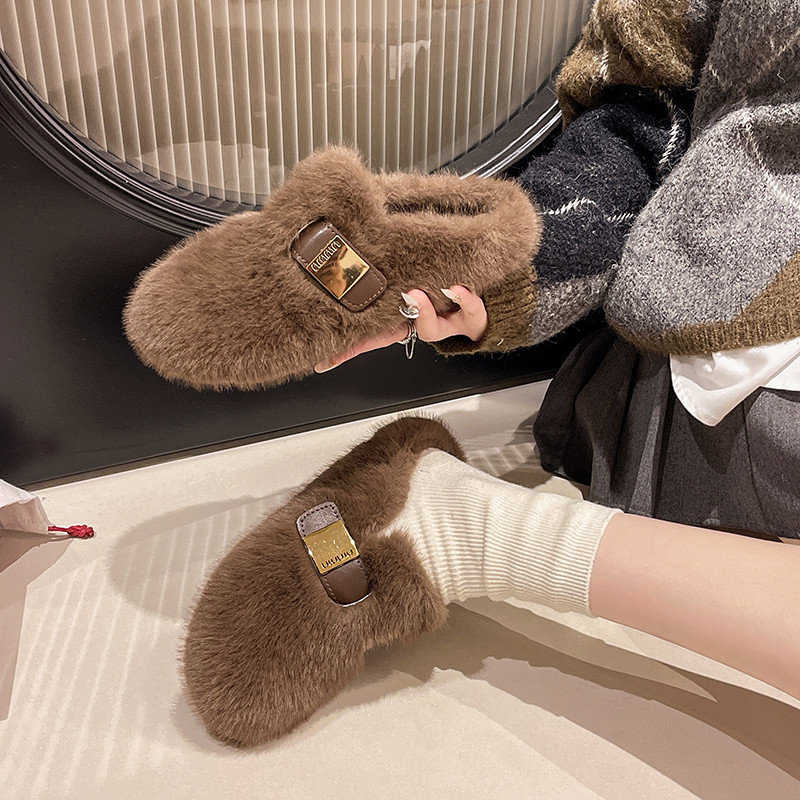 平底包头毛毛拖鞋女外穿2025新款秋冬高级感一脚蹬水貂毛绒棉拖鞋