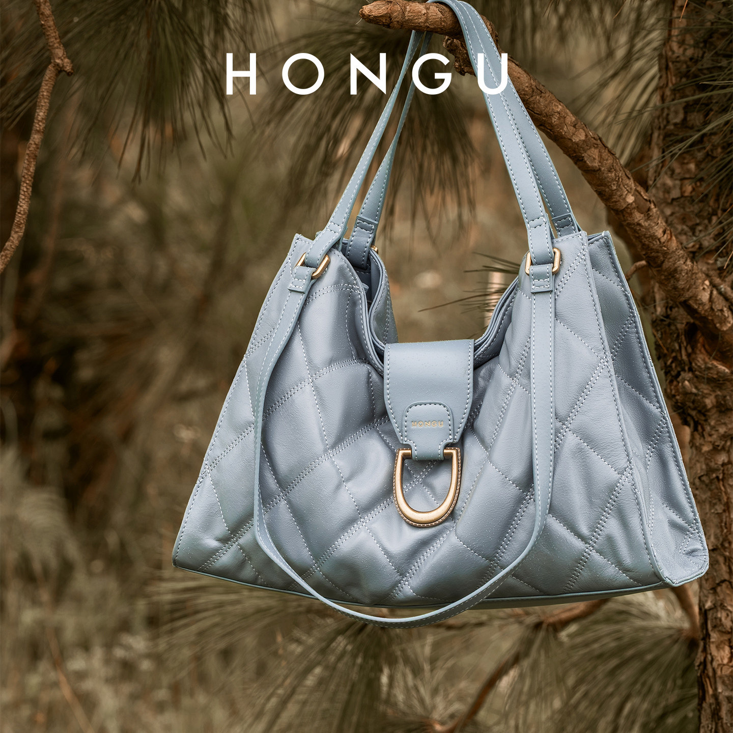 红谷包包女2025新款菱格真皮单肩手提包高级感大容量托特包女士包