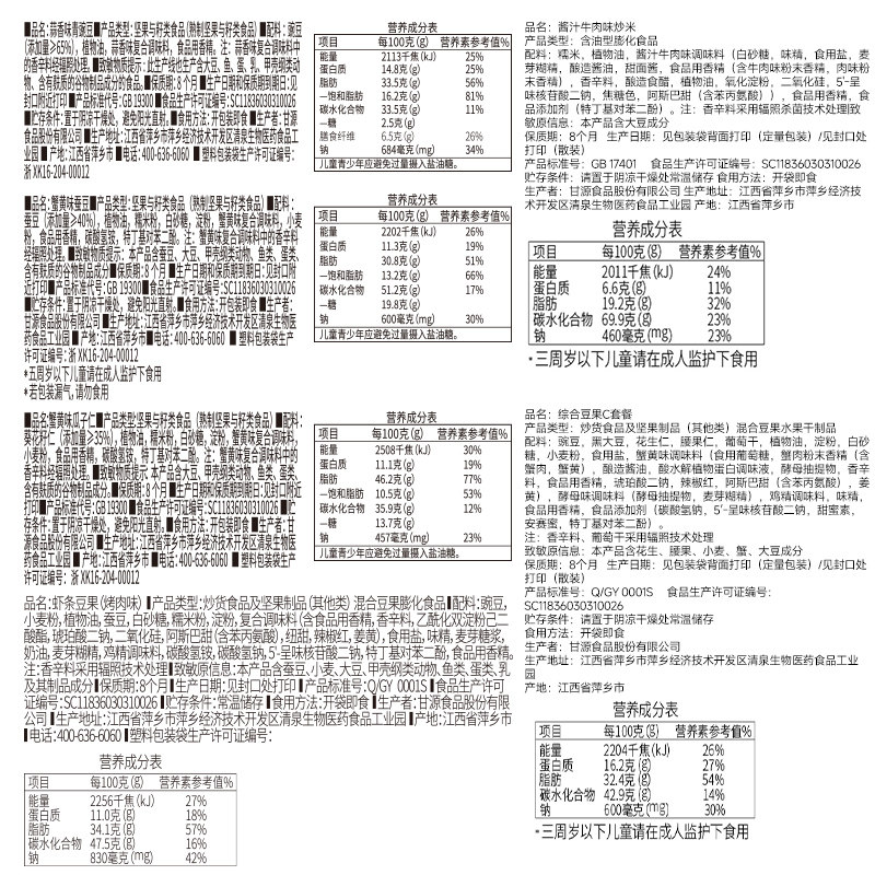 甘源爆款坚果炒货组合装1055g青豆瓜子仁下午茶休闲零食约80小袋