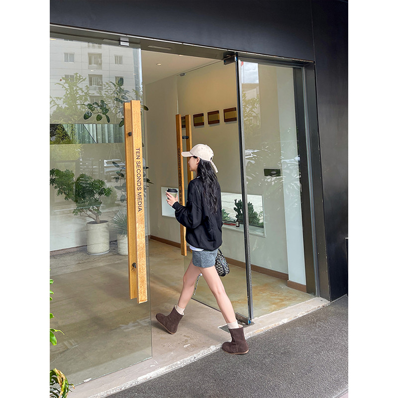 miu家厚底雪地靴女冬季真皮短靴羊毛侧拉链增高厚底加绒毛毛棉鞋