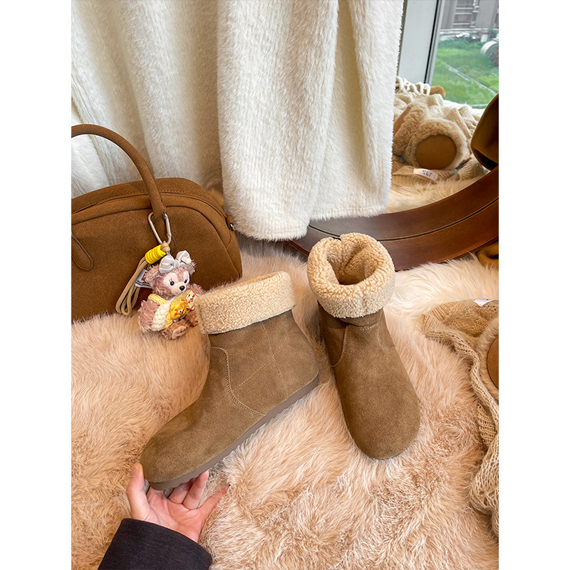 骆驼雪地靴女鞋2025冬季新款加绒保暖棉鞋女加厚东北厚底增高短靴