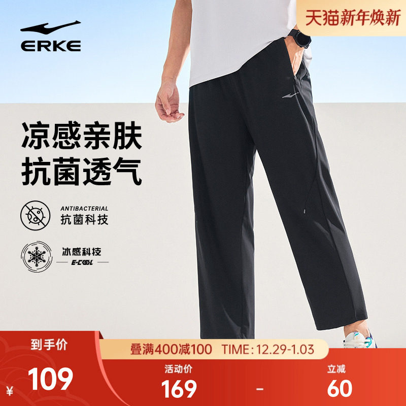 鸿星尔克运动裤男夏季男士冰丝抗菌长裤爸爸直筒透气裤子男生男裤