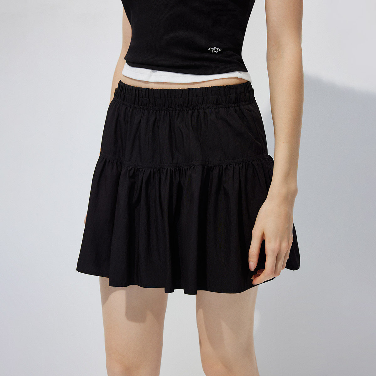 ONLY2026春季新款弹力花边腰身少女感蓬松A摆褶皱短裙半身裙女