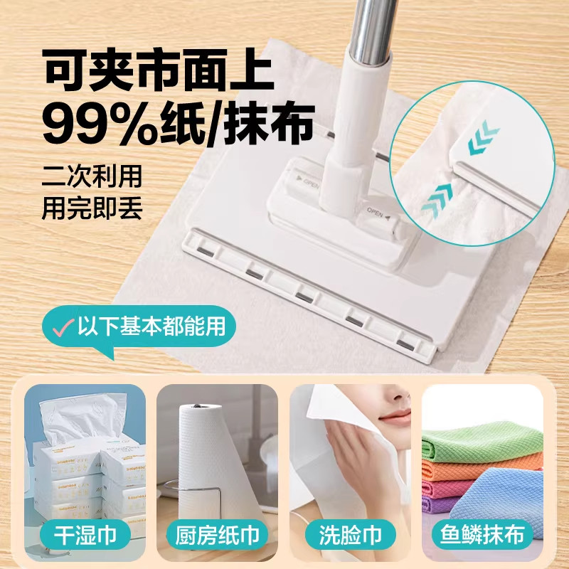 新款洗脸巾拖把家用懒人免手洗夹布静电除尘纸免洗夹固式平板可夹
