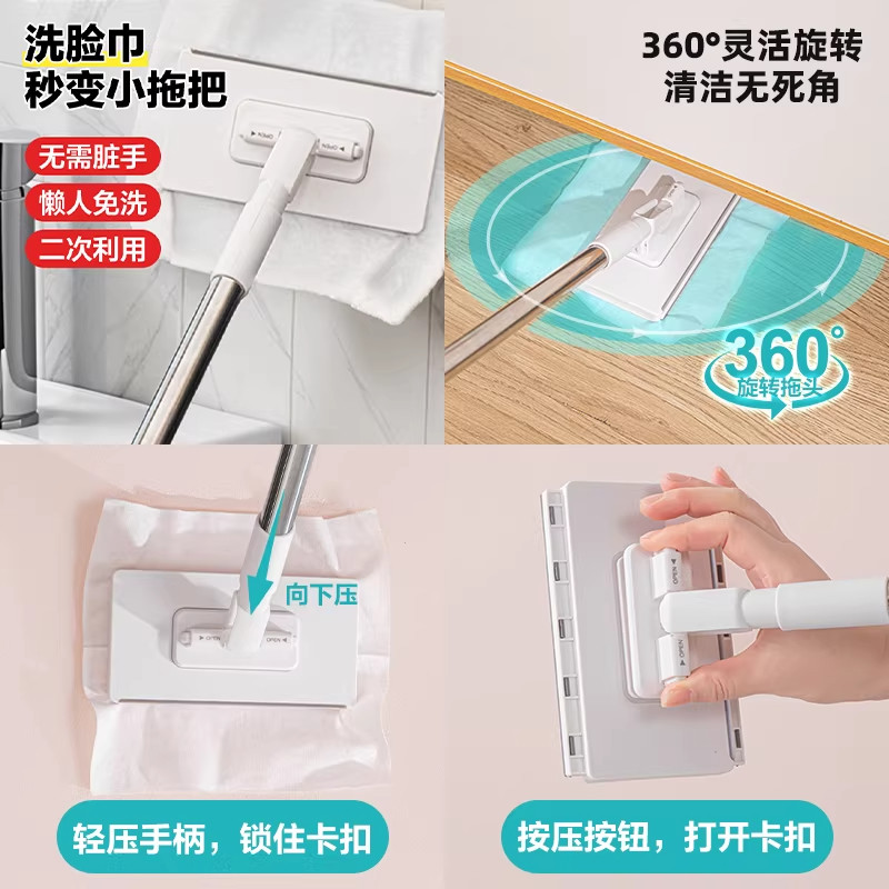索邦洗脸巾小拖把懒人迷你拖把夹布洗面巾二次利用自动换纸地拖