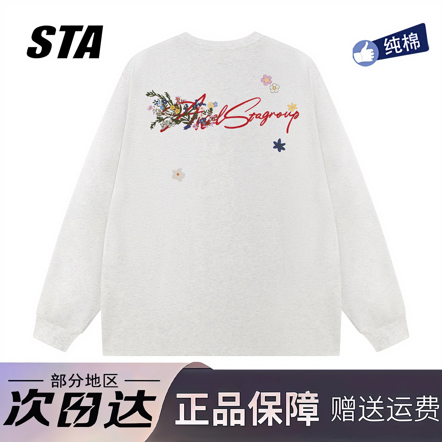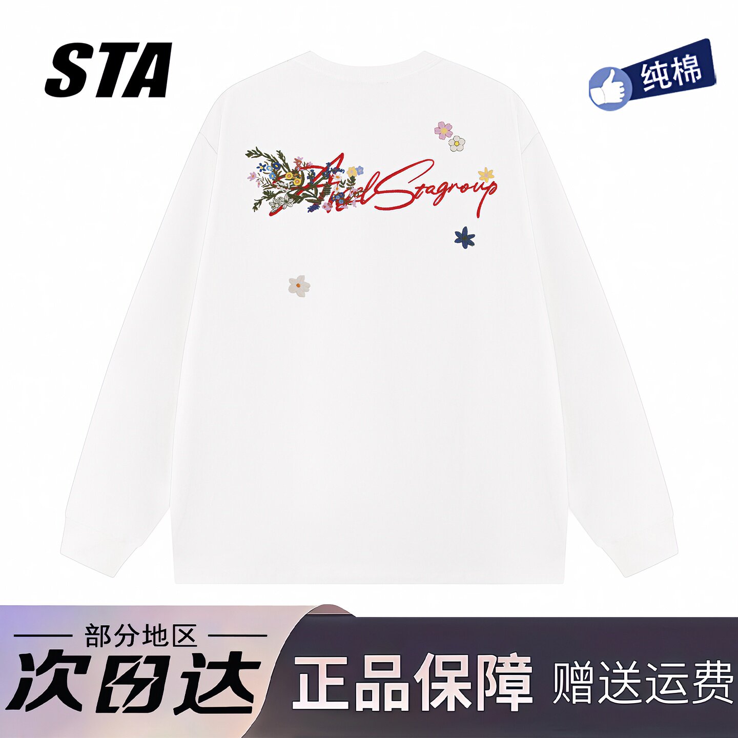 STA旗舰店刺绣花卉字母长袖男女美式潮牌高街重磅纯棉情侣卫衣