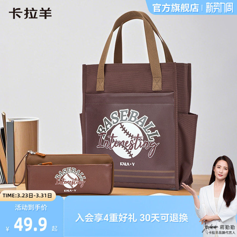 卡拉羊大容量多功能科学分区防泼水补习袋耐磨易打理轻便科学分区学生帆布袋