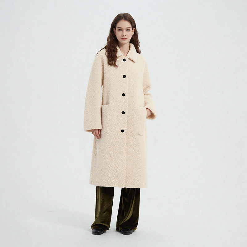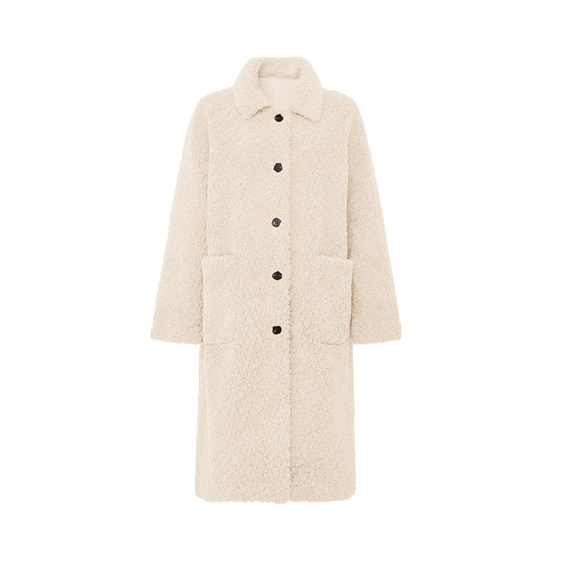Petit Bari简约慵懒翻领长款环保皮草外套女 显瘦秋冬
