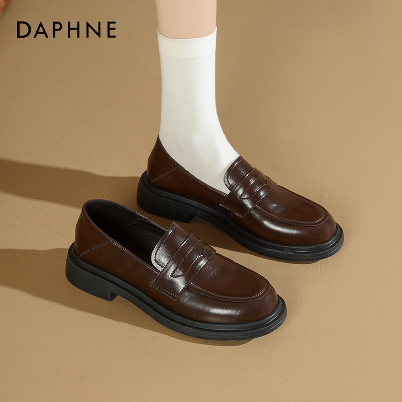 达芙妮黑色乐福鞋女2026新款春季女鞋软底小皮鞋粗跟通勤工作单鞋
