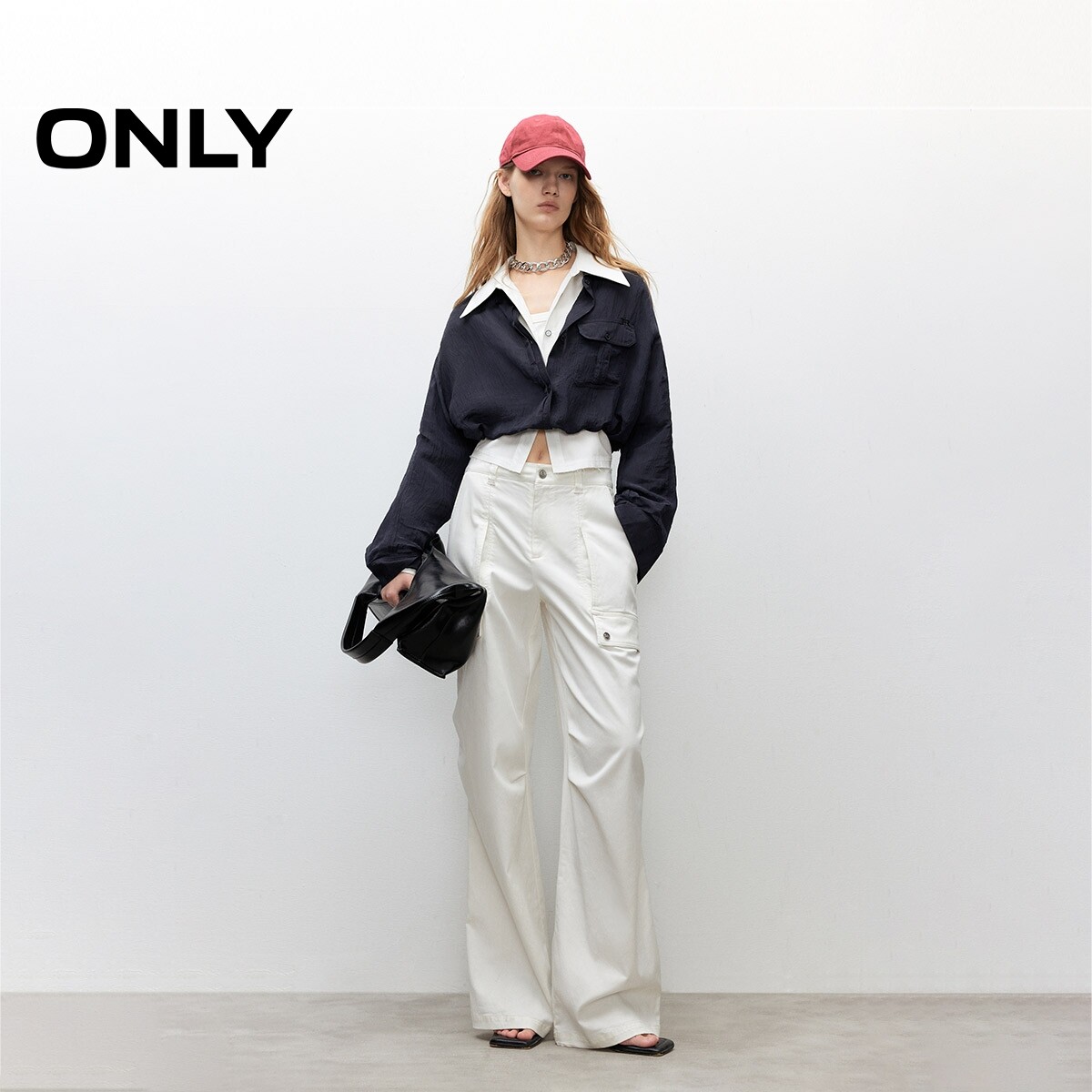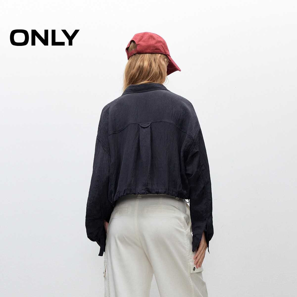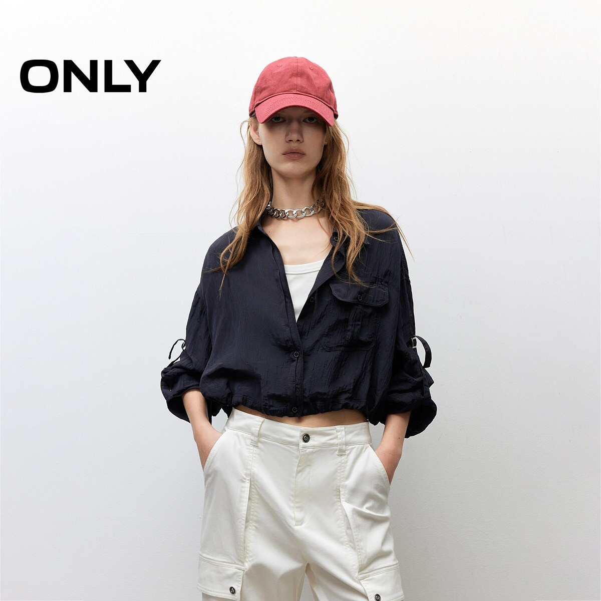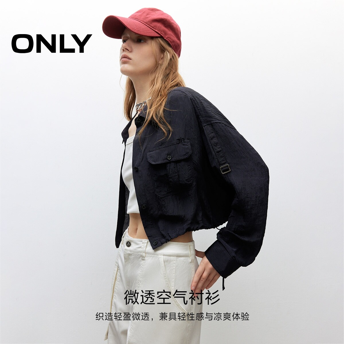 ONLY2026春季新款褶皱肌理抽绳下摆宽松落肩短款长袖衬衫上衣女
