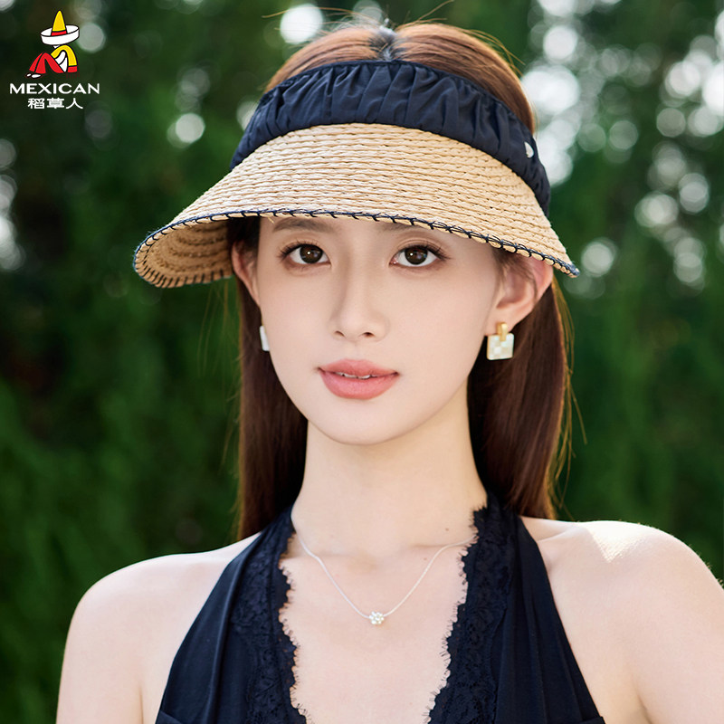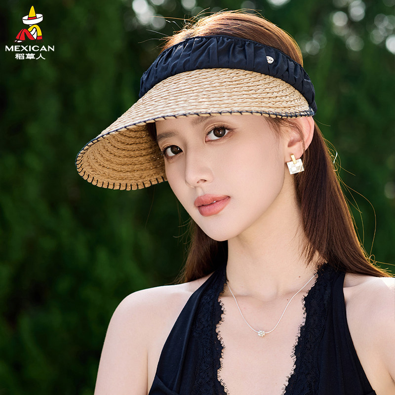 稻草人沙滩帽空顶草帽女夏季防晒遮阳帽度假宽檐太阳帽防紫外线